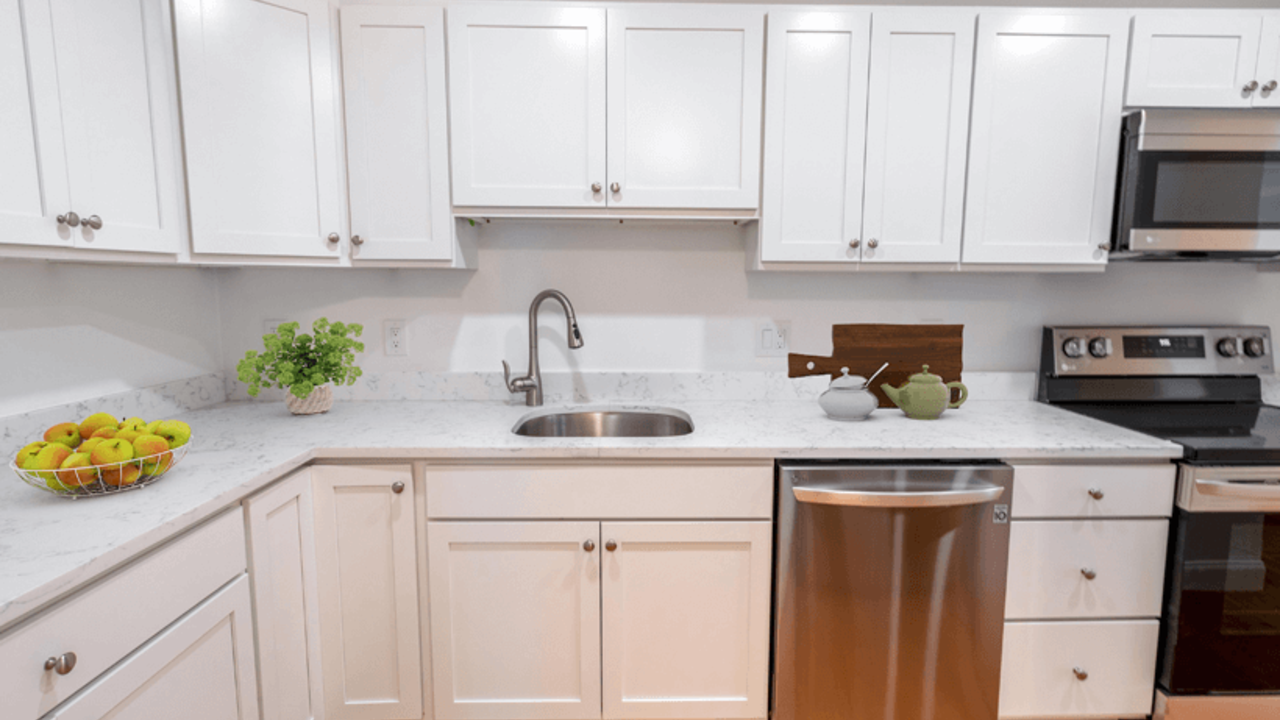- White shaker style kitchen cabinets